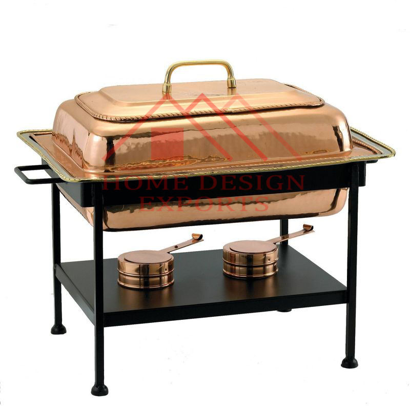 Hammered Design Glossy Finished Copper Food Warmer Burt Set
