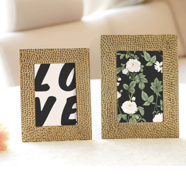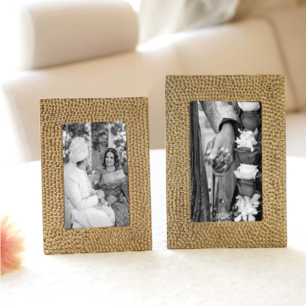Hammered Design Gold Plated Set Of 2 Most Fancy Unique Designer High Grade Gold Plated Heavy Duty Metal Photo Frame