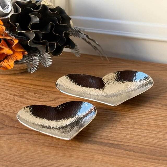 Hammered Design Heart Shape Platter Bowl Snacks & Food Serving Bowl Metal Polished Finished