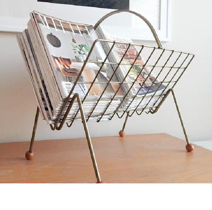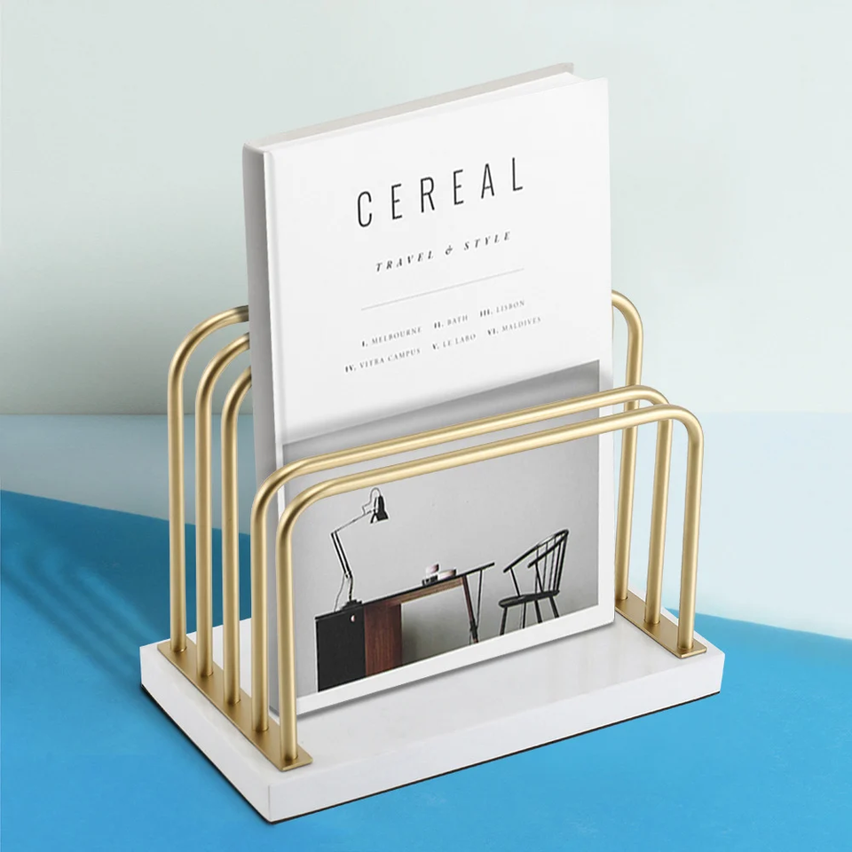 Hammered Design Metal Magazine Rack Space-Saving Bookshelf Storage Holders Golden Finishing