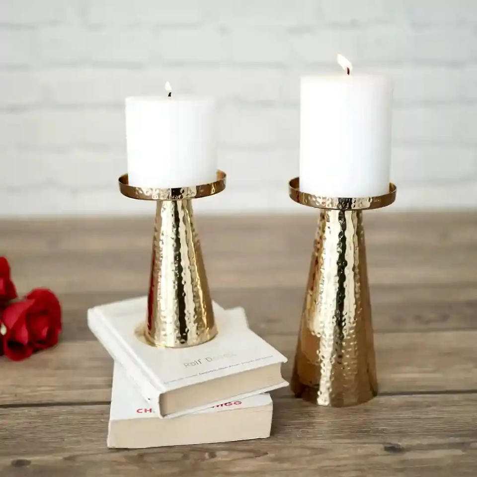 Hammered Design Metal Pillar Candle Holder for Home and Christmas Tabletop Decoration Glossy Gold Candle Pillars