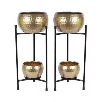 Premium Outdoor Home Decoration Hammered Design New Planter in Gold with Luxury Metal Stand Standing Gardens