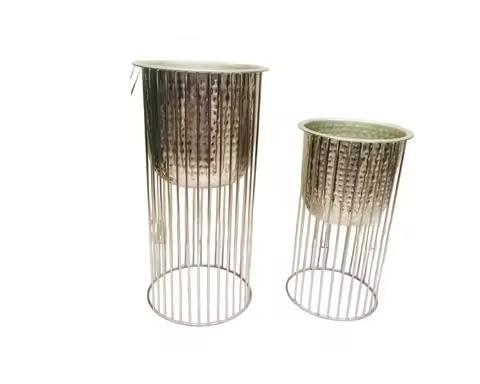 Hammered Design New Planter in Silver Finished Premium Pot With Luxury Metal Stand for Standing Gardens and Outdoor Decoration