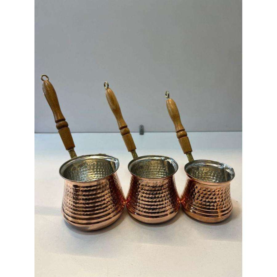 Hammered Design Polish Copper Turkish Coffee Pot With Brass Handles Set of 3 Pieces