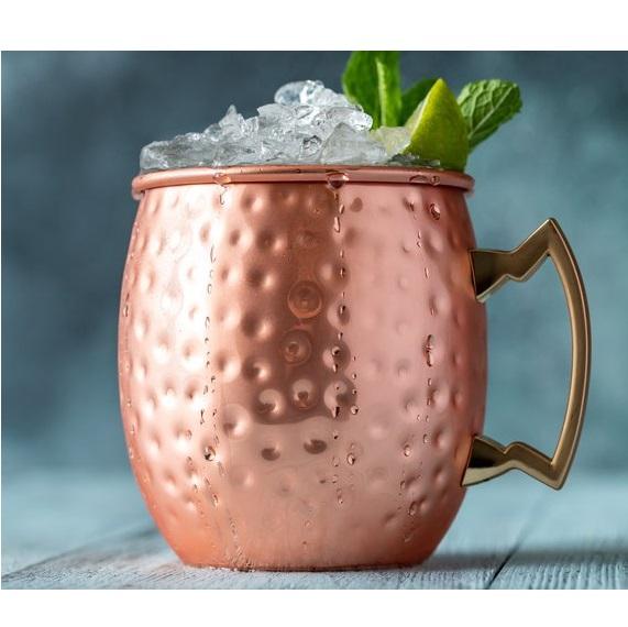 Shiny Copper Moscow Mule Mugs with Brass Handle Hammered Design for Parties and Drinking Water Cola Vodka