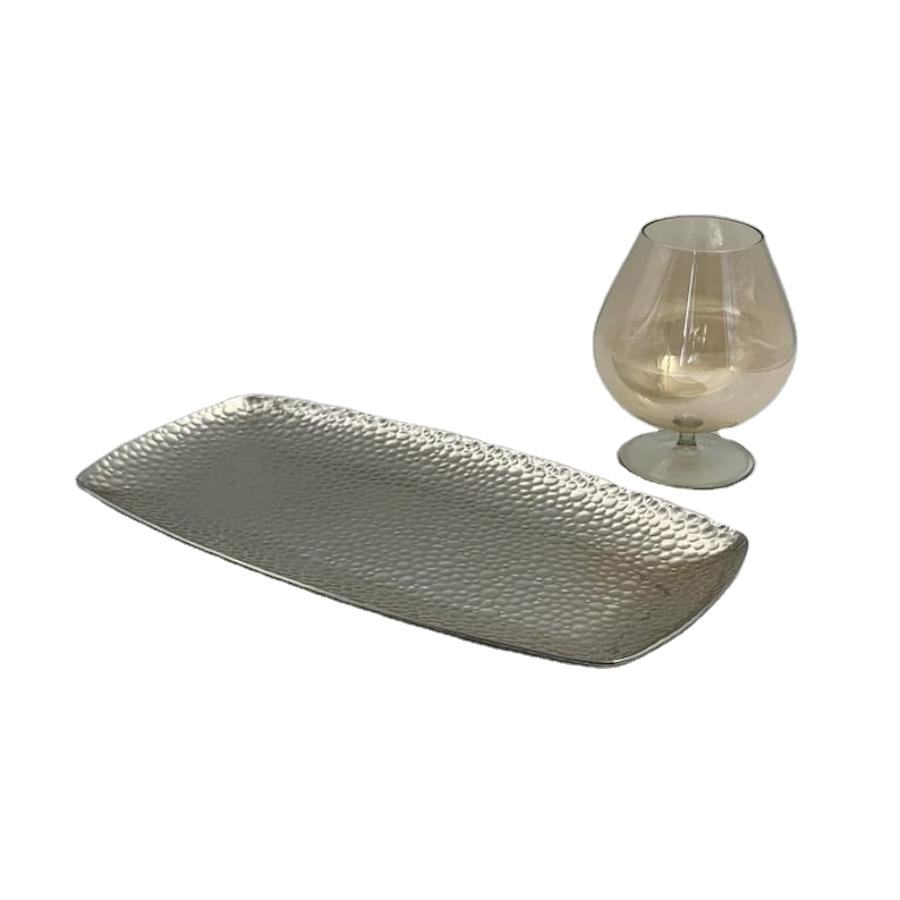 Hammered Design Silver Dish Tray American Style Metal Serving Trays Affordable Price Decorative Fancy Fruits Snacks Platter Tray