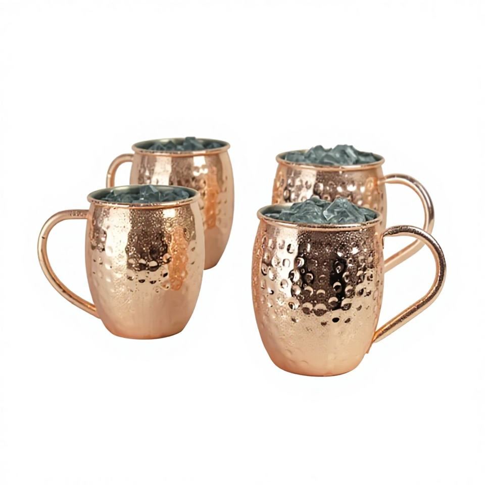 Hammered Design Trending Moscow Mule Mugs Set With LID Direct bar Supplies 100% Pure Copper Mugs Eco Friendly