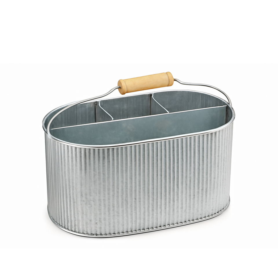 Hammered Finish Metal Flatware Caddy Three Compartments for Organizing Kitchen Utensils Tools Easy Portability for Tableware