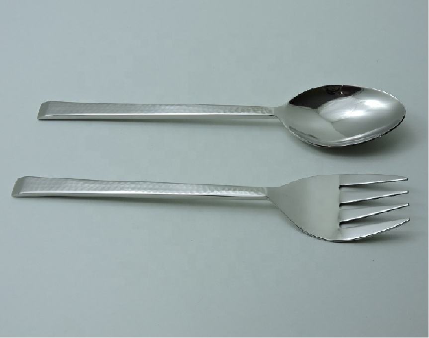 Hammered Full Stainless Steel Salad Server Spoon Flatware Set Steel Fruit and Vegetable Salad Spoon Spinner Kitchen Gadgets