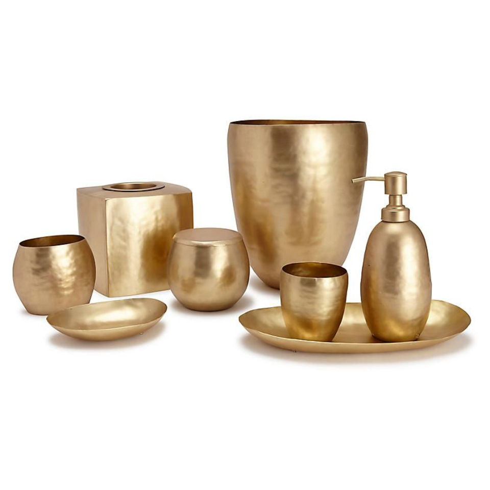 Hammered Gold Bathroom Accessory Set Luxury Metal Soap Dispenser Tumbler Tissue Box Vanity Decor Bathroom Collection Set