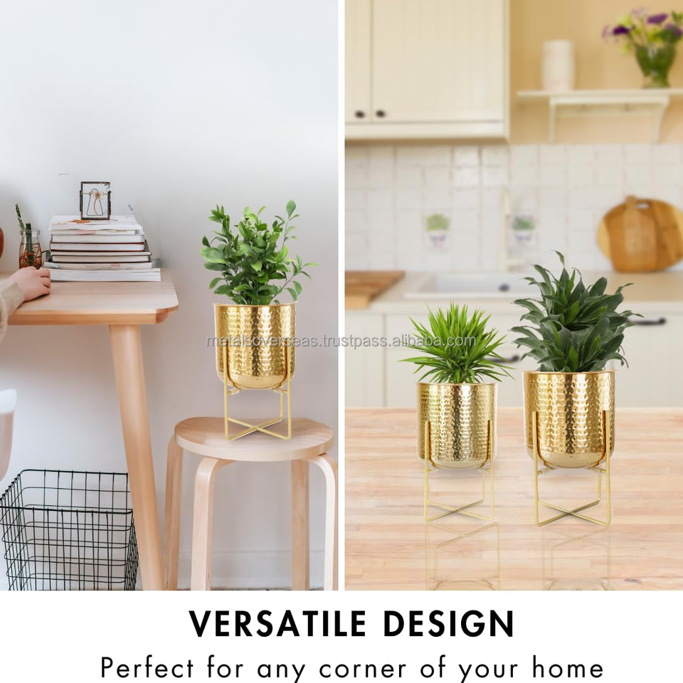 Hammered Gold Metal Planters on Geometric Stands (Pair) High-Texture and Stylish Available at Wholesale Prices