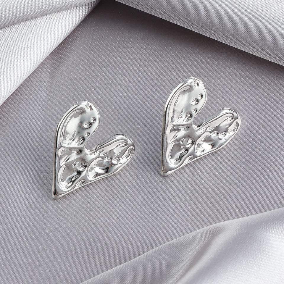 Hammered Heart Earrings Chic Punk Love-Shaped Metal Stud Earrings for Girls