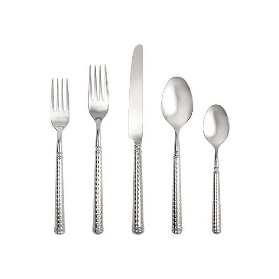 Hammered Hollow Handle Silver Plated Stainless Steel Cutlery Set Forks Spoons Knives Tableware Steel Cutlery Set
