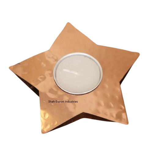 Hammered Look Metal Tealight Candle Holder for Home Event Party Tabletop Decor Copper Color Star Shape Tealight Holder