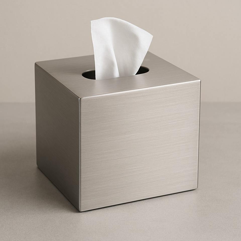 Hammered Matte Metallic Silver Tissue Box Decorative Metal Napkin Holder Elegant Handcrafted Tissue Case Contemporary Tabletop