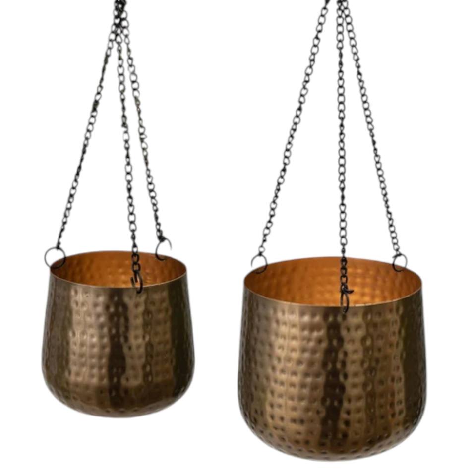 Hammered Metal Hanging Planter Set with Chain Elegant Rustic Pots for Indoor Outdoor Plants and Home Decoration