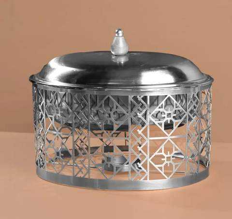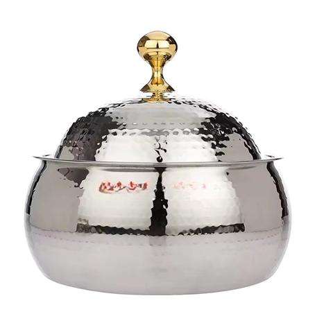 Hammered Silver Dome Lid Insulated Casserole Handcrafted Wooden and Metal Hot Pot for Food Serving & Storage