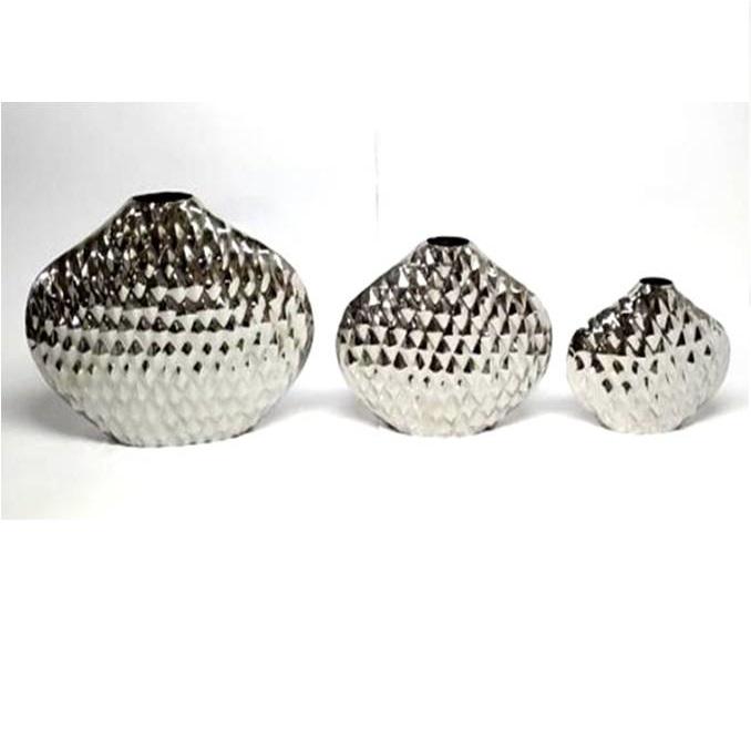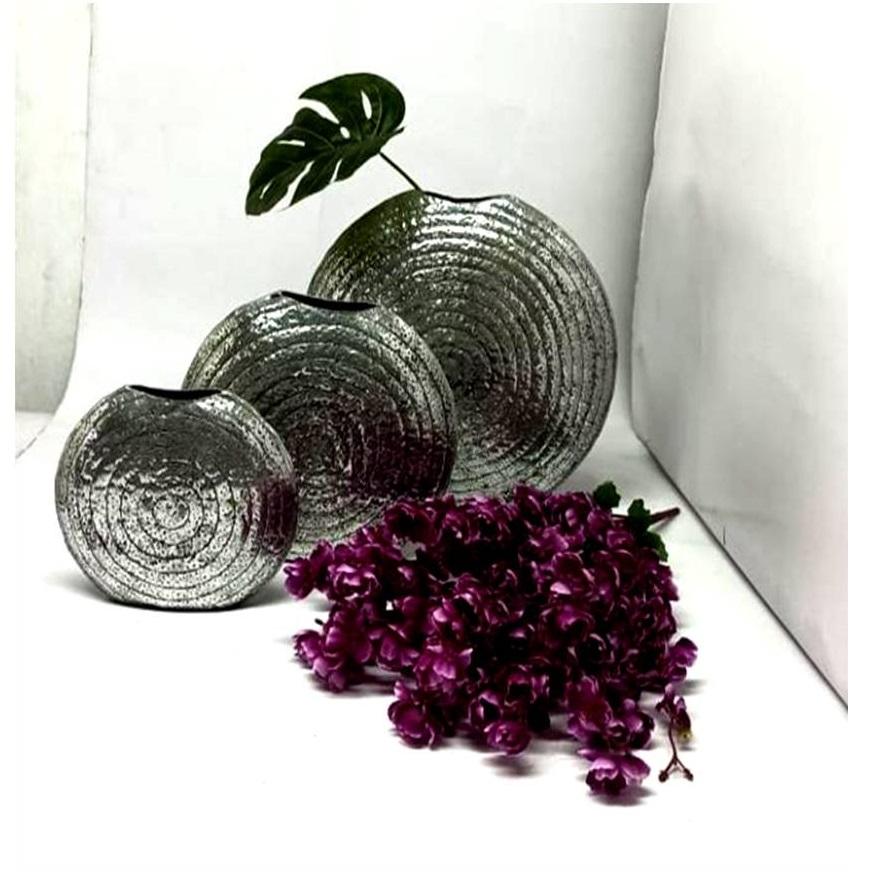Hammered Silver Metal Decorative Vase Handcrafted Round Flower Vase for Luxury Home & Hotel Decor.