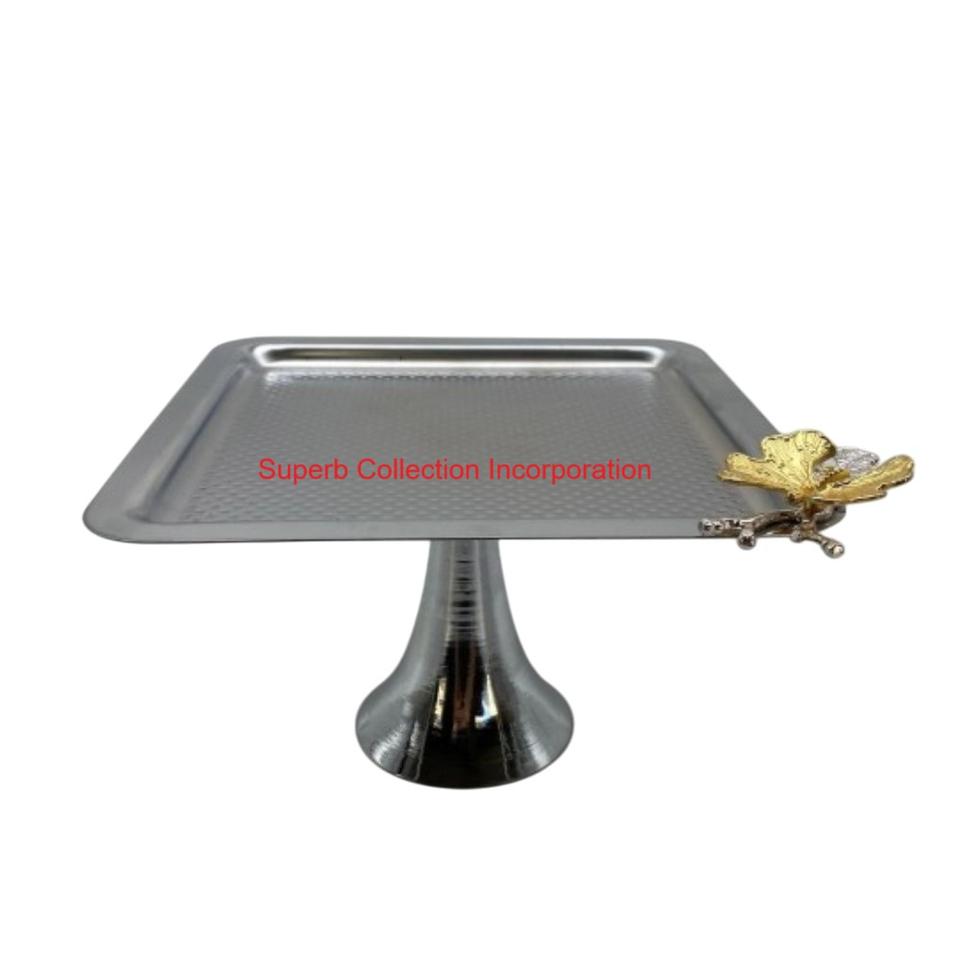 Hammered Silver Plated Round Cake Stand Vintage Style Metal Pedestal Dessert Serving Platter For Weddings Parties And Home Decor