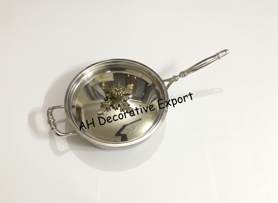 Hammered Stainless Steel Fry pan with Decorative Gold Lid Premium Cook & Serve Pan