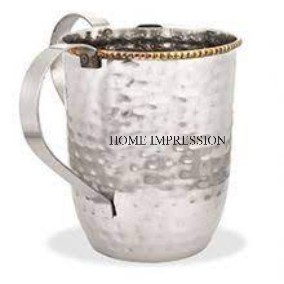 Hammered Stainless Steel Kitchen Tea and Coffee Drinking Mug With Designing Round Border Best Selling Table Decorative Drink Mug