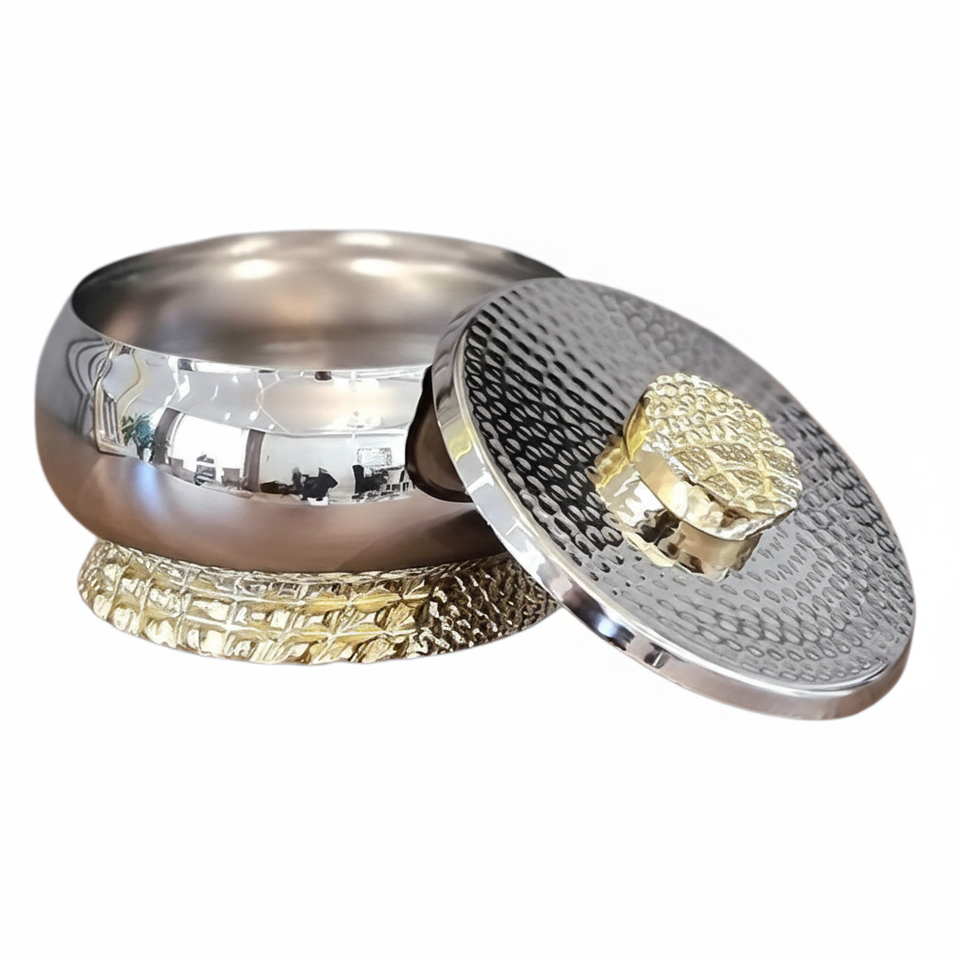 Hammered Texture Shiny Polished Round Shape Design Bowl Aluminum Stainless Steel Metal With Lid Shiny Polished Bowl