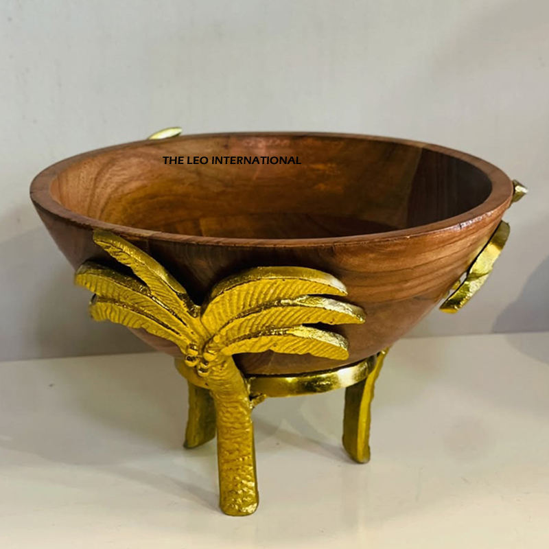Hammered Texture Silver Color With Greatest Golden Design Metal Round Shape Fruits Dates Serving Japanese Bowl