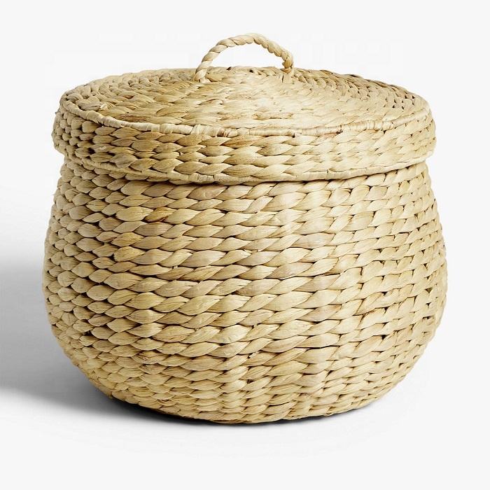 Hamper Water Hyacinth Round Wicker Basket Organizer Storage Box Plant Pot King Craft Viet Cabinet Basket