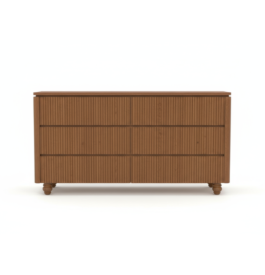 Hampton Fluted White Oak 6-Drawer Dresser Reclaimed Pine Fronts Stainless Steel Soft Close Rails Full Fluted Design Apartment
