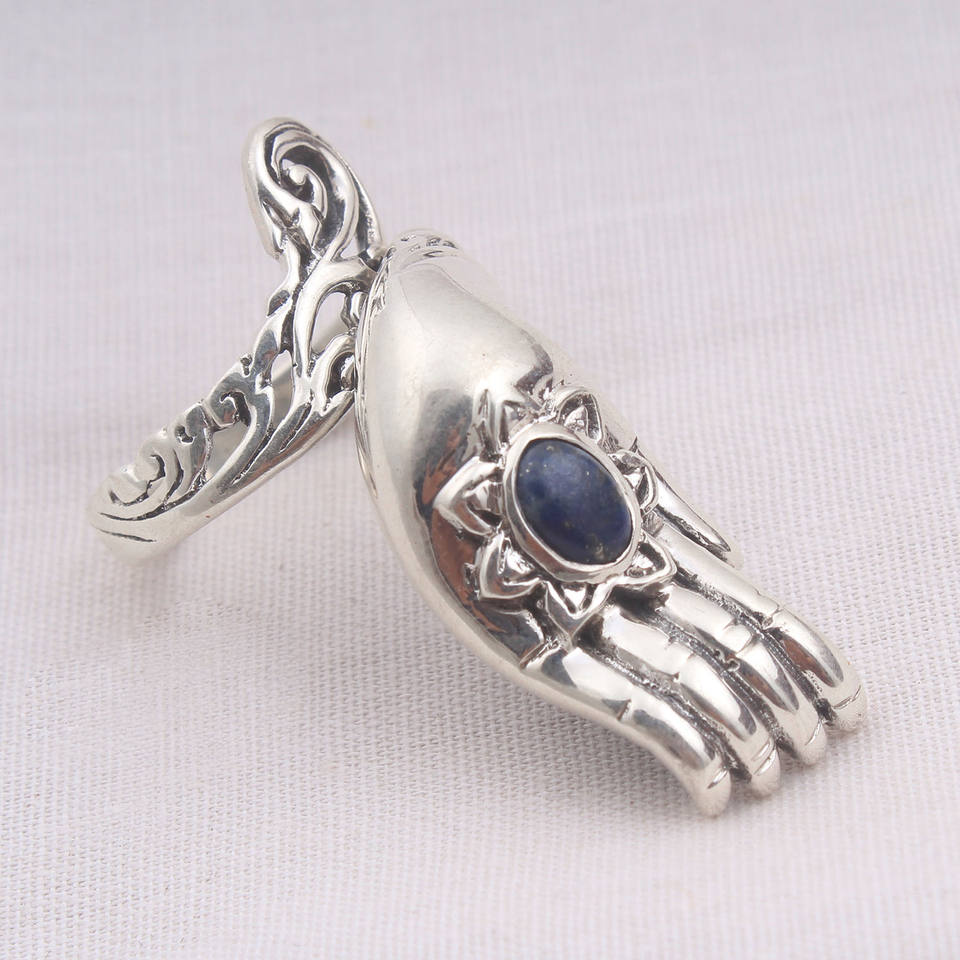 Hamsa Design Lapis Gemstone925 Sterling Silver Ring Hand Design Women Style Fashion Fine Bulk Jewelry Supplier