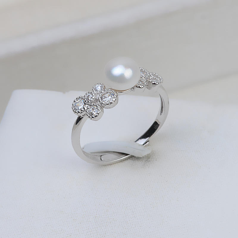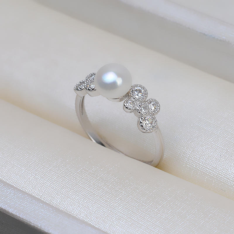 Han Handmade S925 Silver Open Ring for Women DIY Pearl Accessories 5-6 Pearl Jewelry Empty Tray 217