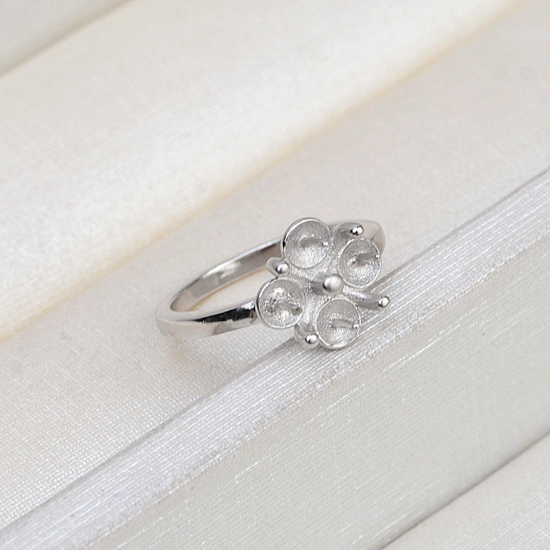 Han S925 Silver Ring Female Closed End 4-Bead Plate DIY Multi Bead 4-5 Ring Empty Tray 1751-Jewelry Findings & Components