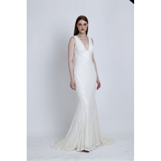 Hand Beaded Elegant Sleeveless V Neck Gown Sparkly Bridal Wedding Dress Luxury Evening Dress Perfect for Red Carpet Events