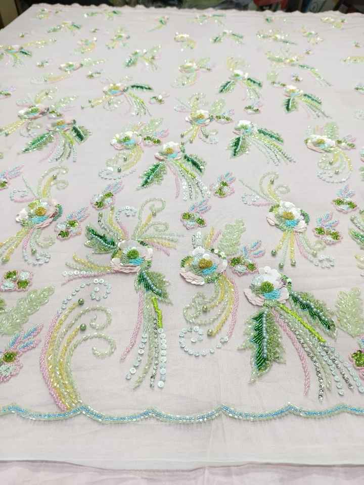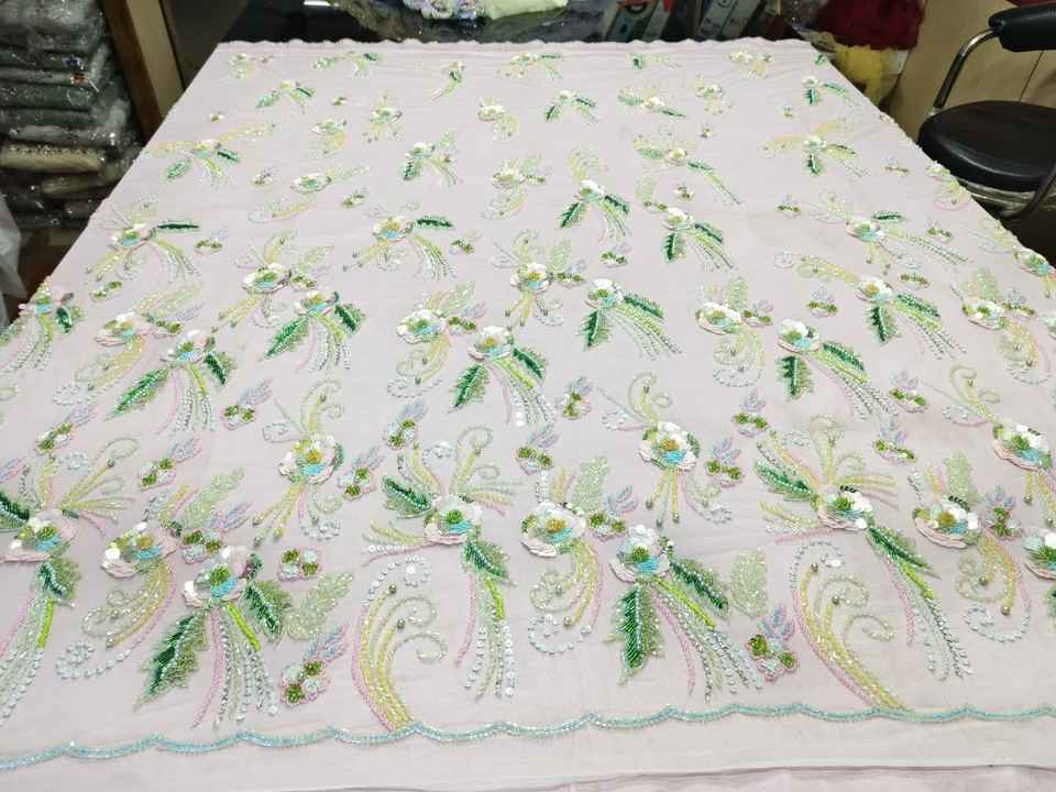 Hand Beaded Embroidered Eco-Friendly Net Fabric Heavyweight Weft Knitted Cross Style for Accessories