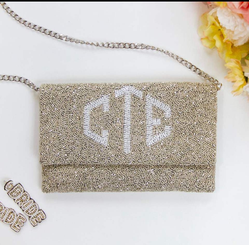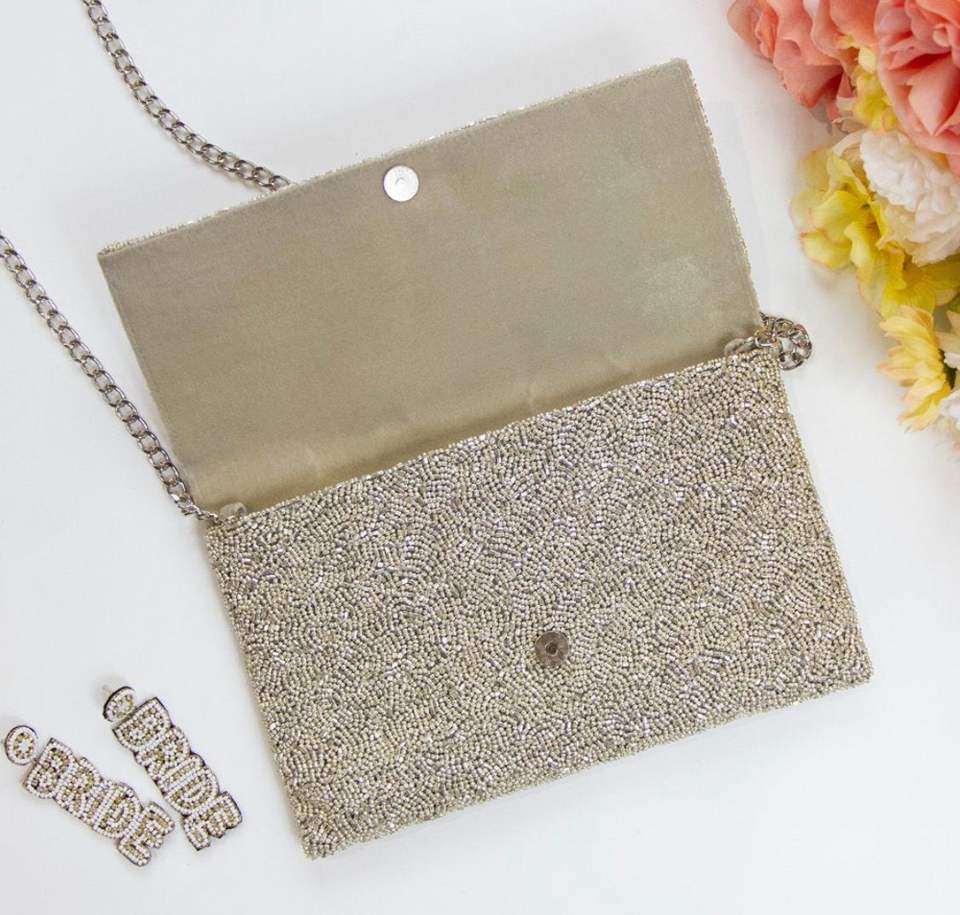 Hand Beaded Luxury Crossbody Chain Clutch Bag Envelope Shape Evening Party Bag with Cotton Lining Rhinestone Crystal Material