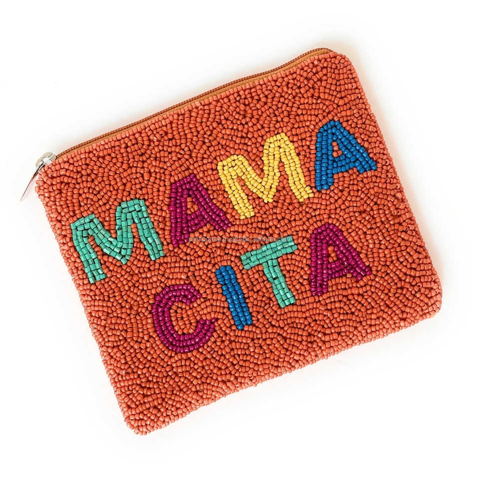 Hand Beaded Ocean Lover Pouch Small Shell Pattern Zipper Clutch Sequin Coin Purse Custom Bead Embroidery Bag for Gift Travel