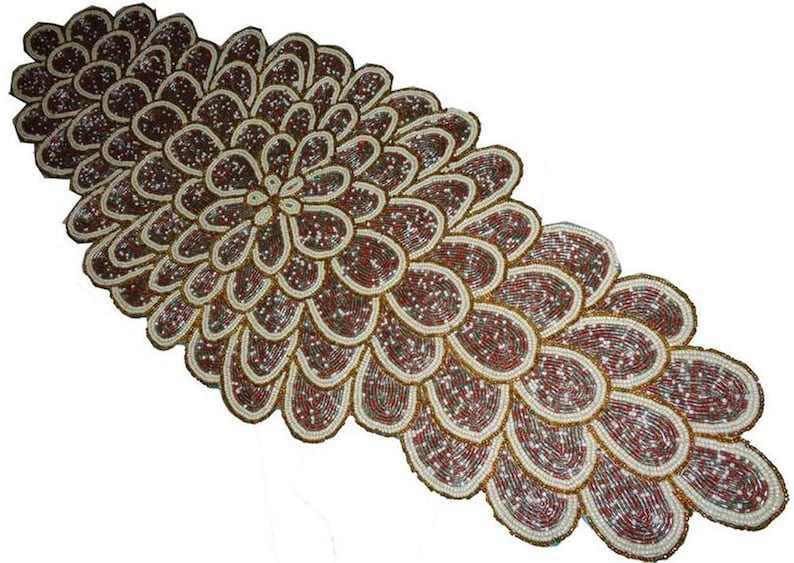 Hand Beaded Table Runner: Multicolored Glass Beads, 36 x 13 Inches