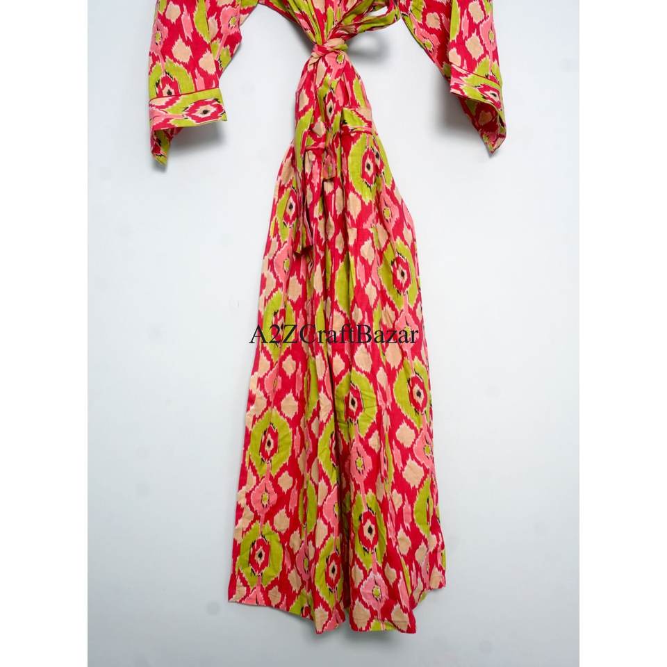 Hand Block Floral Printed Cotton Kimono V-neckline with simple design & floral print with Traditional Techniques for night wear