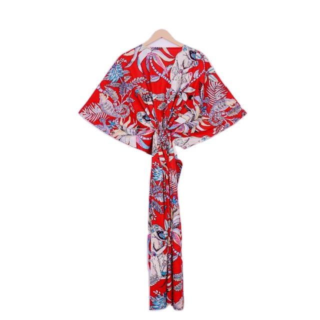 Hand Block Floral Printed Robe Sleepwear Women Gown Short Kaftan Cotton Crossover Stylish Tunic Maxi Beach Wear Caftan Dress