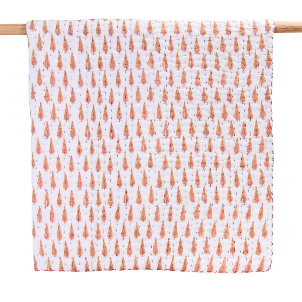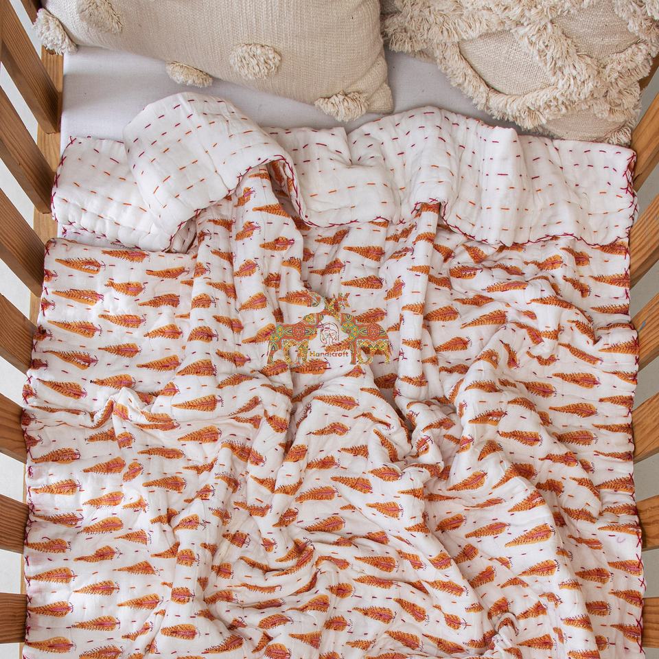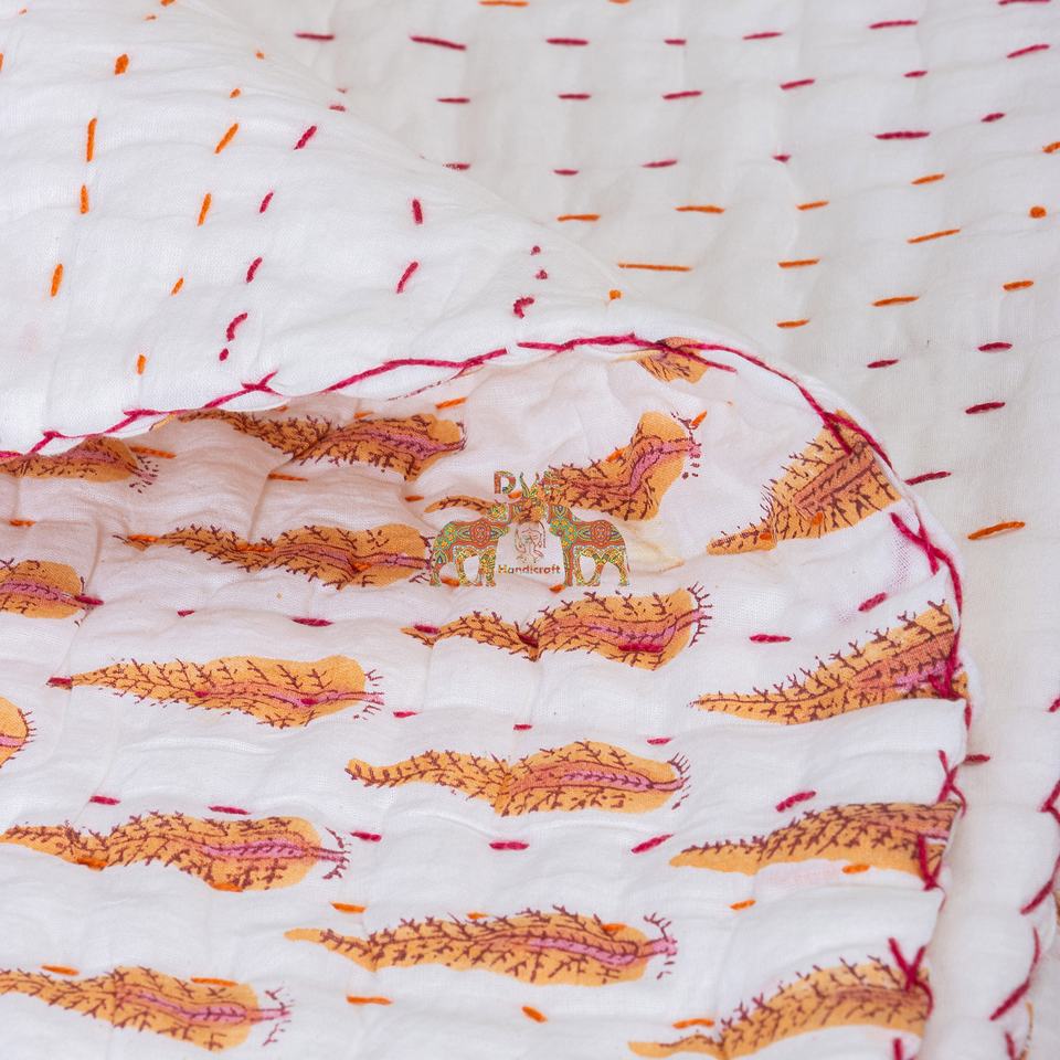 Custom Printed Organic Cotton Kantha Quilt Soft Lightweight Handmade Baby Blanket Leaf Design for Home Hotel Use Winter Season