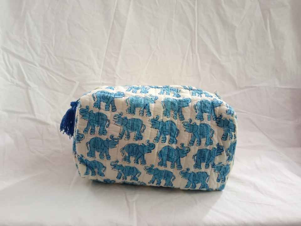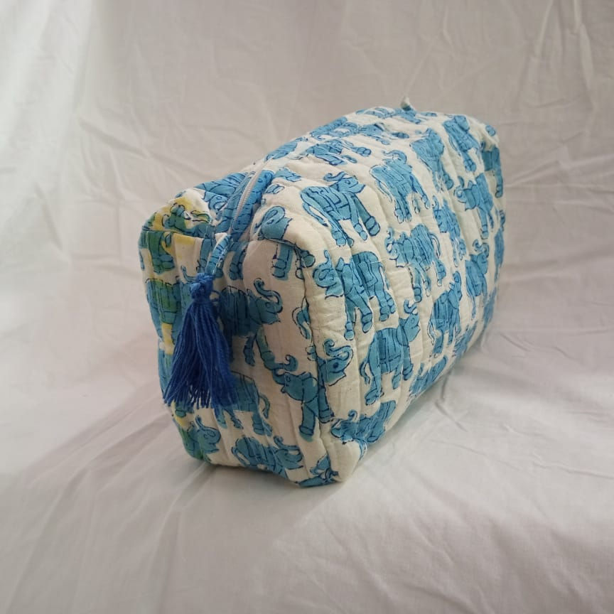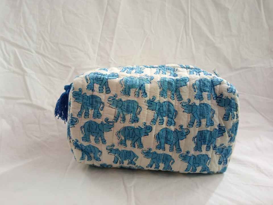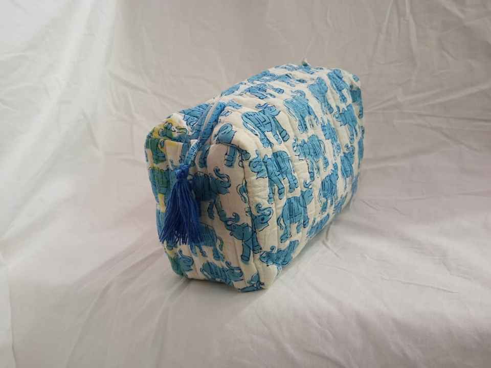 Hand Block Ostrich Pattern Cotton Pouch Small Travel Unisex Makeup Bag Zipper Closure Waterproof Bohemian Style Storage