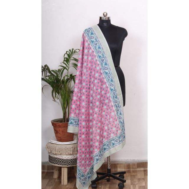 Hand Block Print 100% Cotton Long Scarf Beach Sarong Soft Voile Fabric Summer Pareo Stylish Beach Wear Cover Argyle Printed