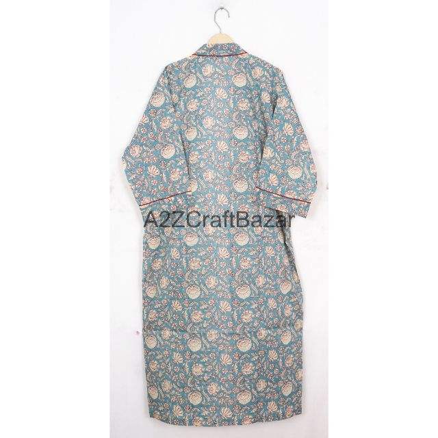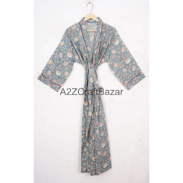 Floral Hand Block Print Cotton Kimono Dress for Women Indian Style Nightwear Bathrobe All Season Comfortable Sleepwear Front