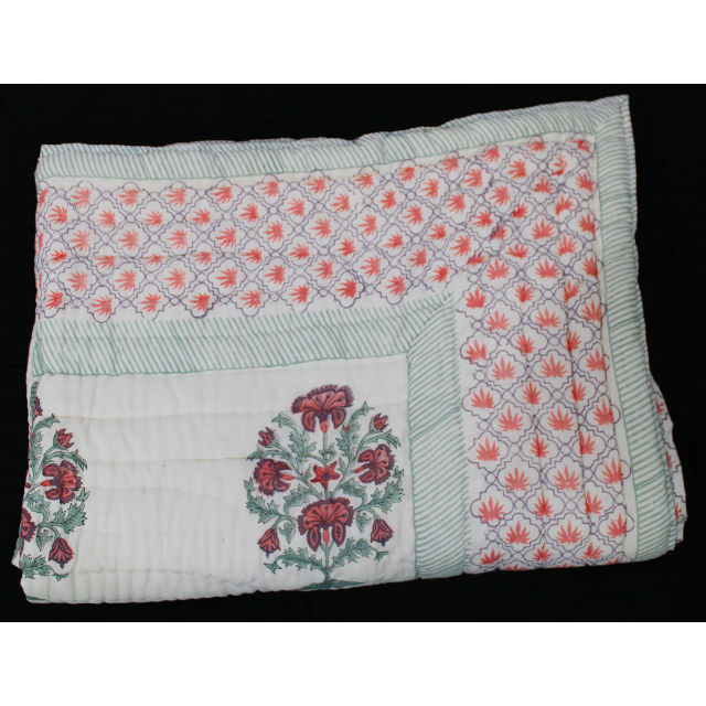Hand Block Print Handmade Cotton Floral Print Bed Spread Modern Home Decor Throw Indian Reversible Ethnic Jaipur Print Quilt