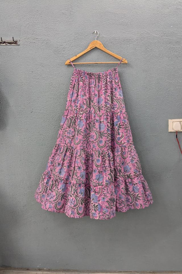 Hand Block Print Indian Cotton Skirt Floral Sustainable Versatile Casual Style for Summer Winter Spring Party Occasions