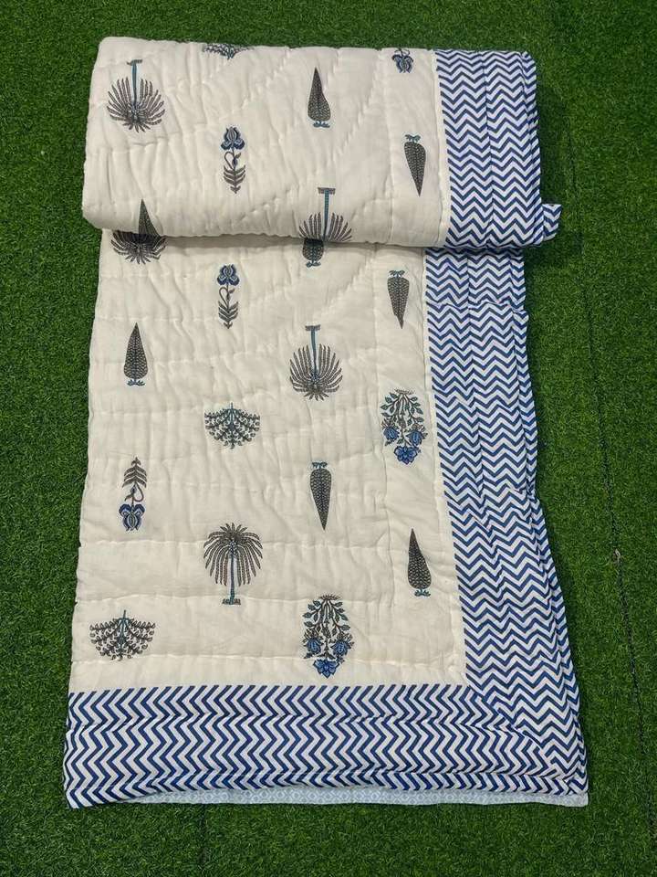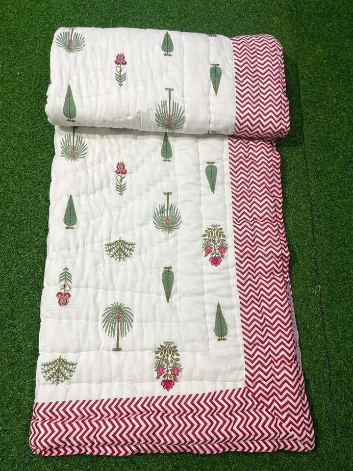 Hand Block Print Jaipuri Quilt Handmade Floral Modern Reversible Eco-Friendly Cotton Bedspread Washable Breathable Luxury Home