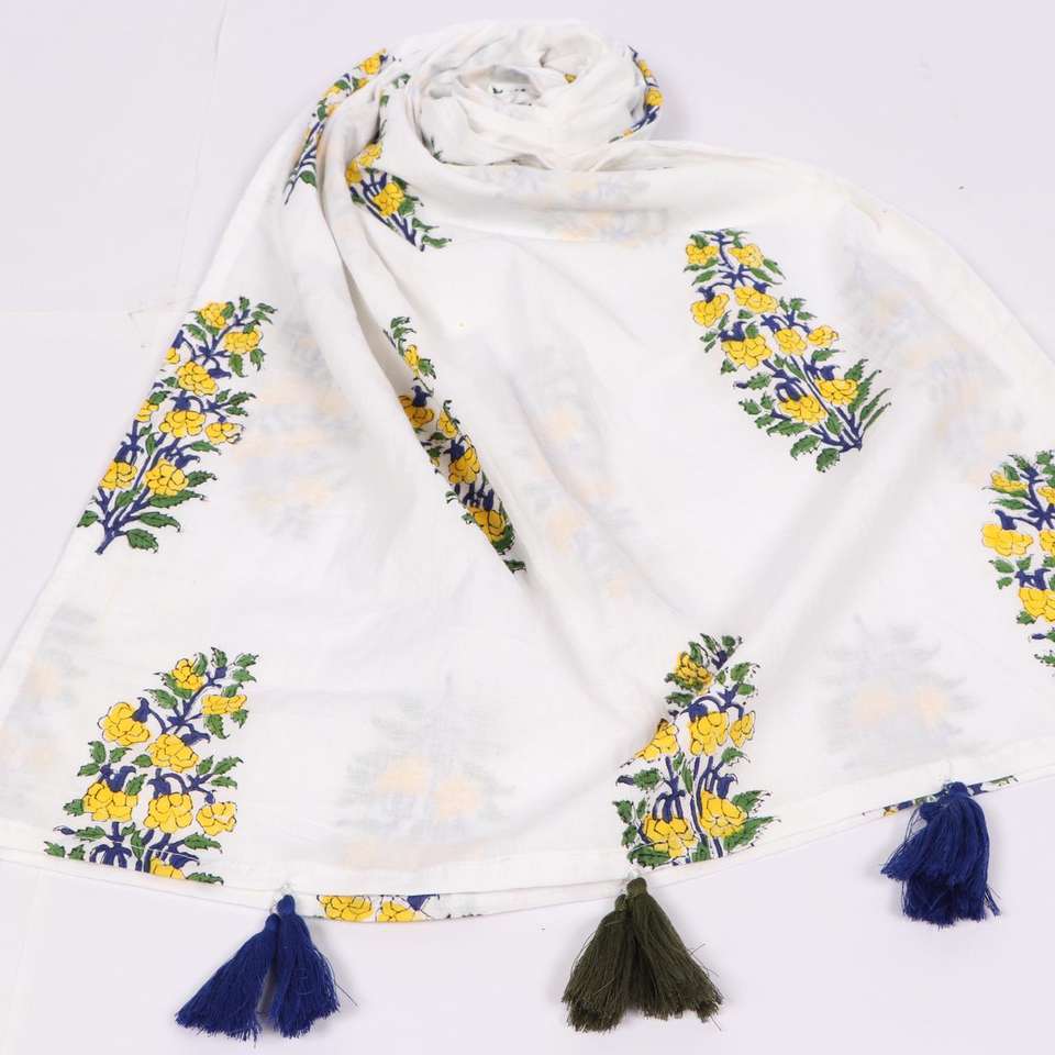Hand Block Print Pure Cotton Girls Neck Dupatta Fashionable Trendy Beautiful Printed Scarf Summer Silk Scarf-F68
