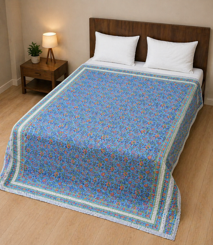 Hand Block Print Quilt Jaipuri Razai Cotton Bedspread Floral Bedding Lightweight Summer Quilt King Queen
