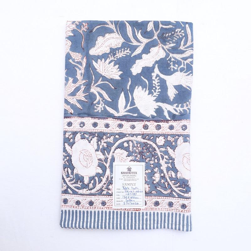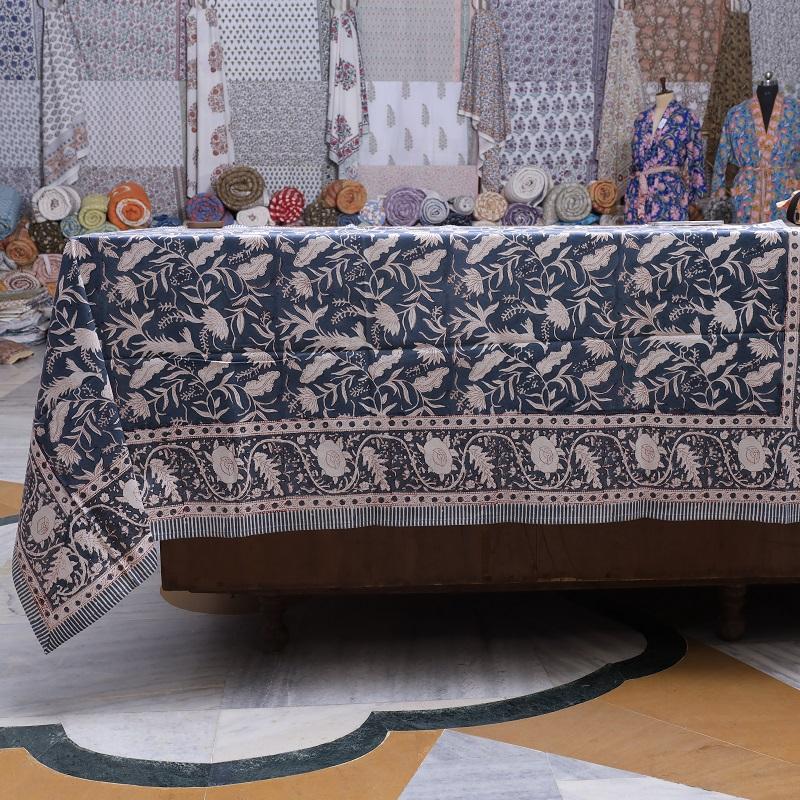 Hand Block Print Rectangular Table Cloth Organic Cotton Floral Design for Fine Dining Table Decor Durable and Wholesale Bulk