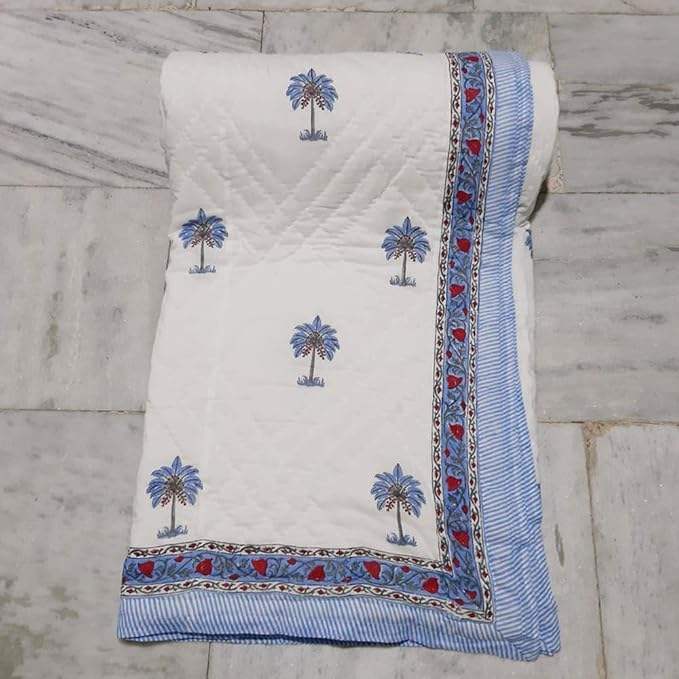 Hand Block Print Vintage Design Double Bed Jaipuri Razai Quilt 90x 108 Inches Housewarming Valentines Day Gift Reversible Quilt